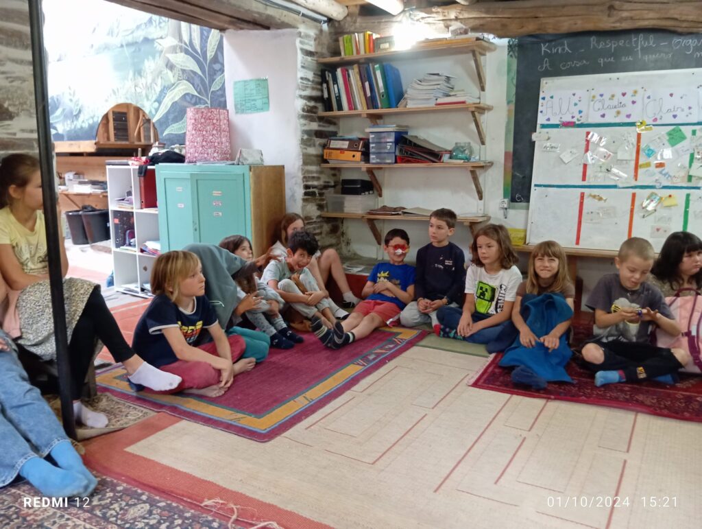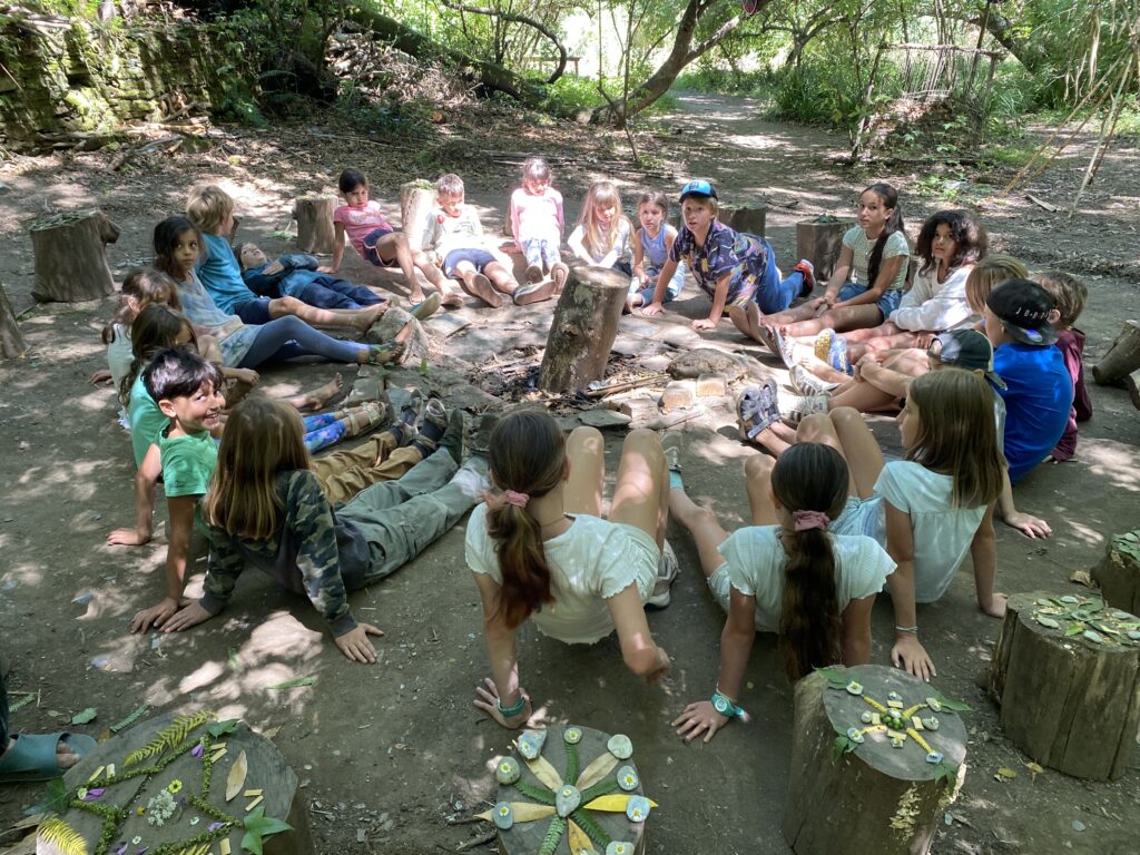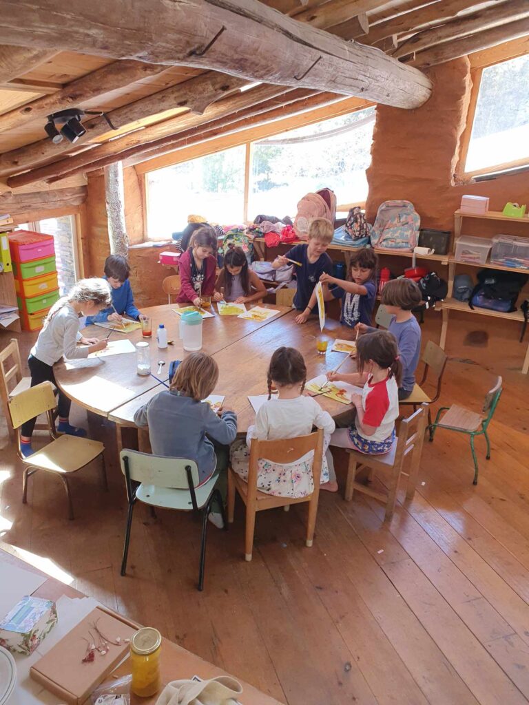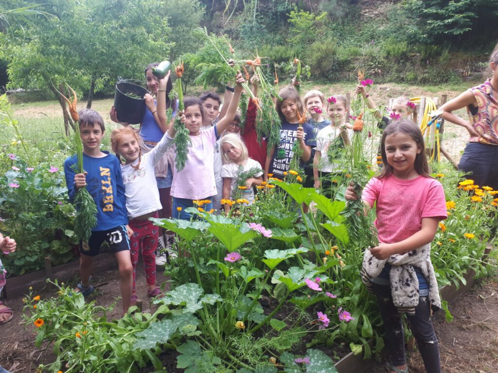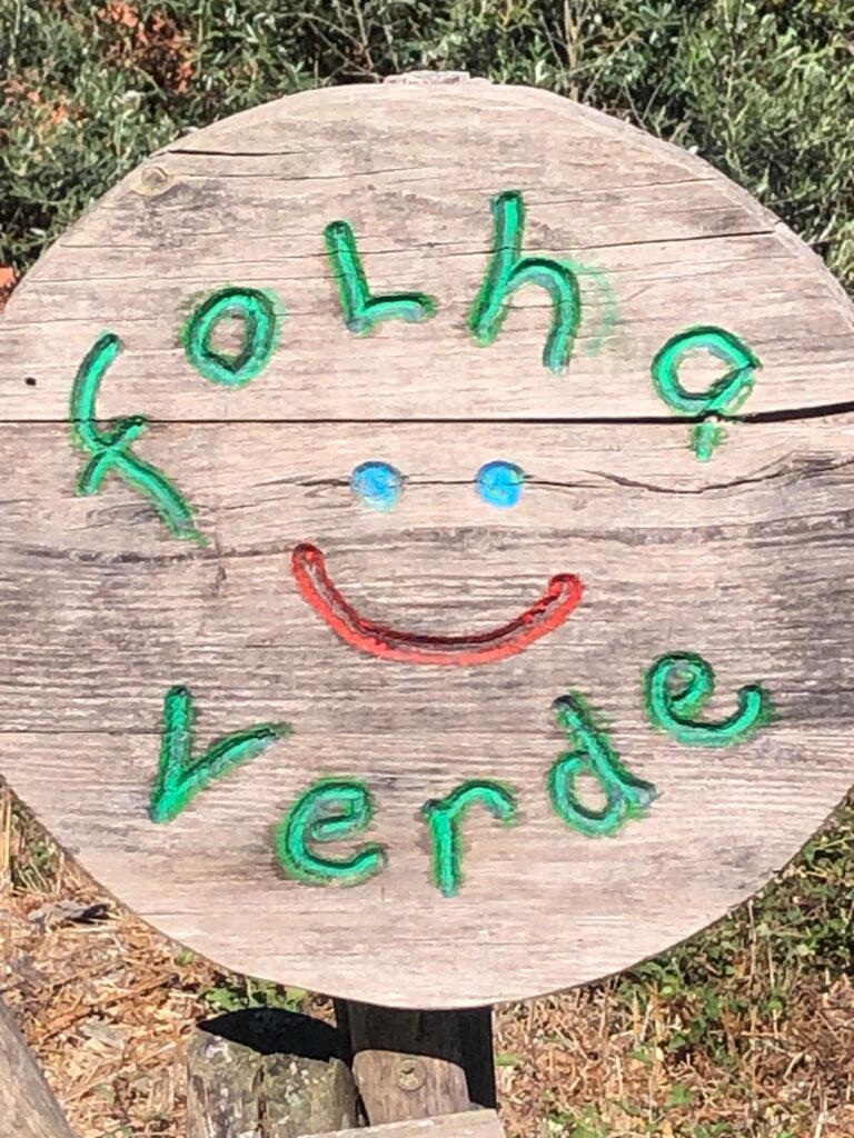 Next to the Lagar’s main building are our communal kitchen and an off-grid vermi-composting toilet, completing the welcoming and practical environment we’ve nurtured over the years. The playground is a lively and imaginative space, with a trampoline, climbing frame, child-designed “café,” two swing sets, a vegetable garden, a completely independently child created ‘Baba Garden’ and the much-loved “hole,” an ever-evolving project created and maintained by the children since day one. It’s something that truly has to be seen to be appreciated! We’ve also created several shaded areas, and the beautiful trees scattered throughout the space provide a cool, refreshing atmosphere during the summer months. In the extended garden on the valley floor we have a beautiful wilderness space to accommodate the Forest School which runs on Thursdays during term time.